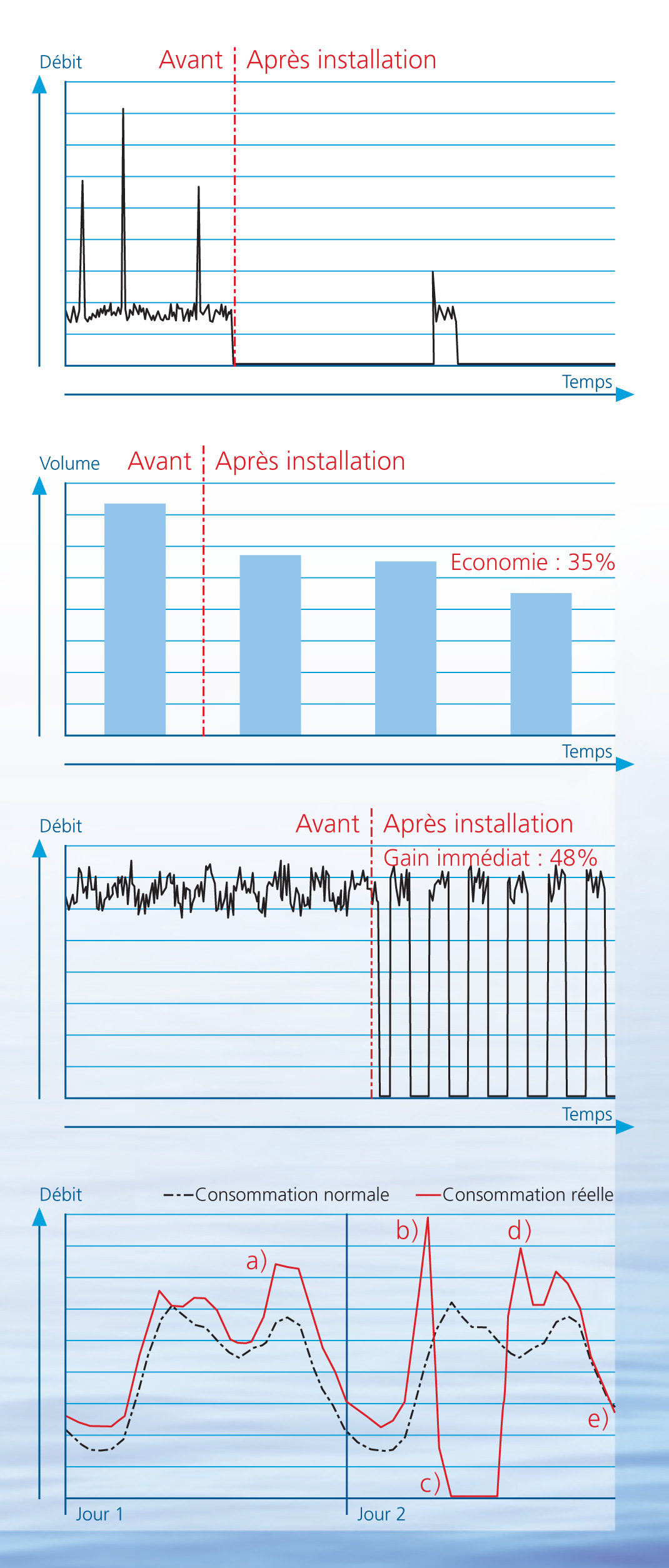 Mr. Pascal Debros, OrangeNous avons en effet pu constater une optimisation de la consommation d’eau significative sur les points équipés dépassant souvent 30% d’économies.